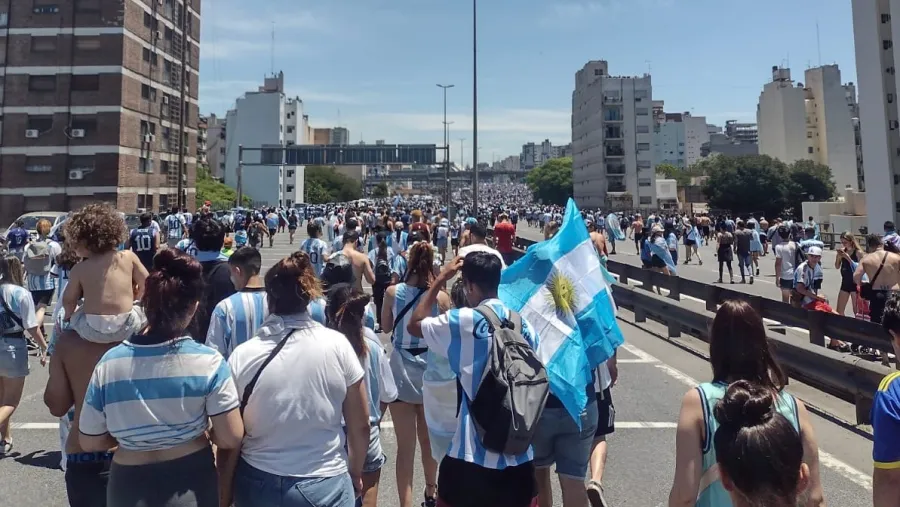 Me tocó mirar una escena que guardaré para siempre: autopistas que se cruzaban por el aire, todas repletas por el pueblo argentino cantando feliz. Allí, todos expuestos al sol por horas cabeceaban globos inflados con agua por los vecinos para refrescarnos. Incluso, alguno que otro manguereaba multitudes desde el balcón de su casa.