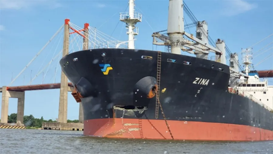 El Bulk Carrier “Zina” es un barco que tiene 181 metros de eslora, 30 metros de manga y 8,5 metros de calado. Es un granelero que se construyó en 2012 (hace 11 años) y navega bajo la bandera de Malta. Se dirigía a San Nicolás a cargar granos con destino a algún puerto fuera del país.