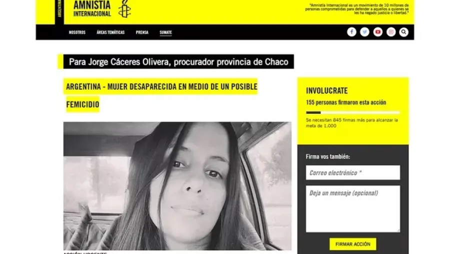 A un mes de la desaparición de Cecilia Strzyzowski, Amnistía Internacional Argentina lanzó una campaña global con el objetivo de impulsar a sus seguidores y activistas a firmar una carta dirigida al equipo especial de fiscales que investigan el caso para exigir una investigación “efectiva, imparcial e independiente, oportuna y con perspectiva de género” que permita establecer la verdad sobre el posible femicidio de la joven de 28 años.