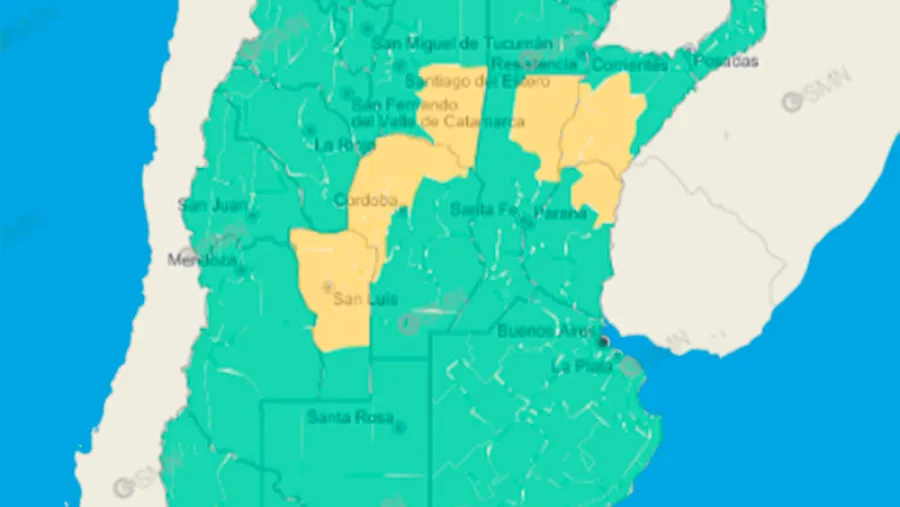 Para este domingo, el Servicio Meteorológico Nacional (SMN) comunicó que hay una alerta amarilla vigente por tormentas para una zona de Entre Ríos. Afectará a los Departamentos de Concordia, Feliciano, Federal, San Salvador y Federación.