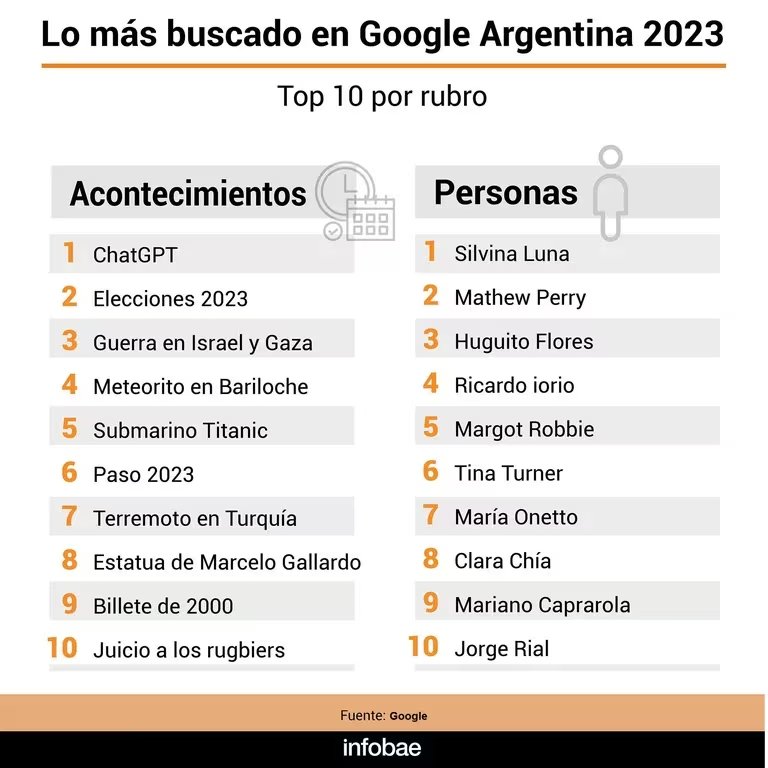 Los acontecimientos que impactaron a los argentinos. La inteligencia artificial estuvo por encima de las elecciones, y ChatGPT resultó primero en la lista luego de su lanzamiento a finales de 2022.