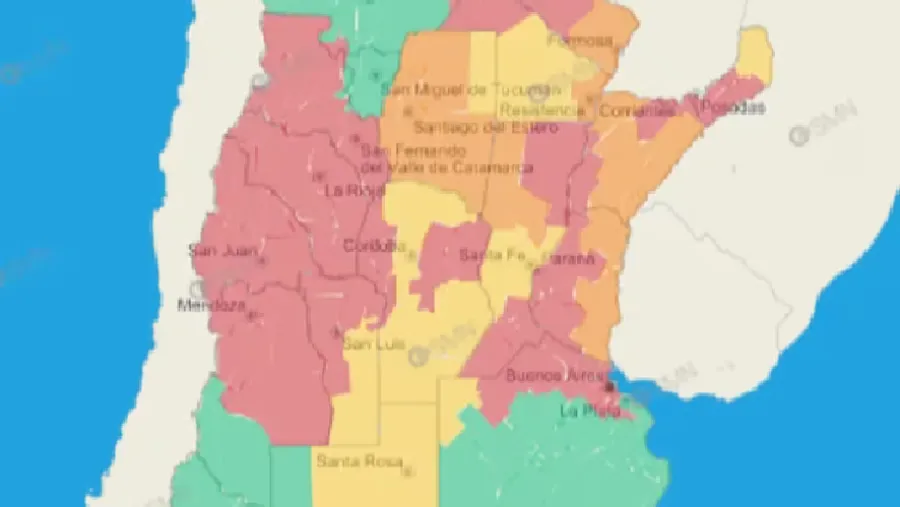 A una semana de que se desataran los calores extremos en el norte y centro del país, el Servicio Meteorológico Nacional (SMN) activó varias alertas amarillas por tormentas que afectarán a algunos sectores de las provincias de Buenos Aires, La Pampa, Río Negro, Mendoza, La Rioja, Catamarca, Salta y Jujuy. Asimismo, señalaron que, a excepción de Jujuy, Salta y Tucumán, en el resto norte y centro del país continuarán las altas temperaturas.