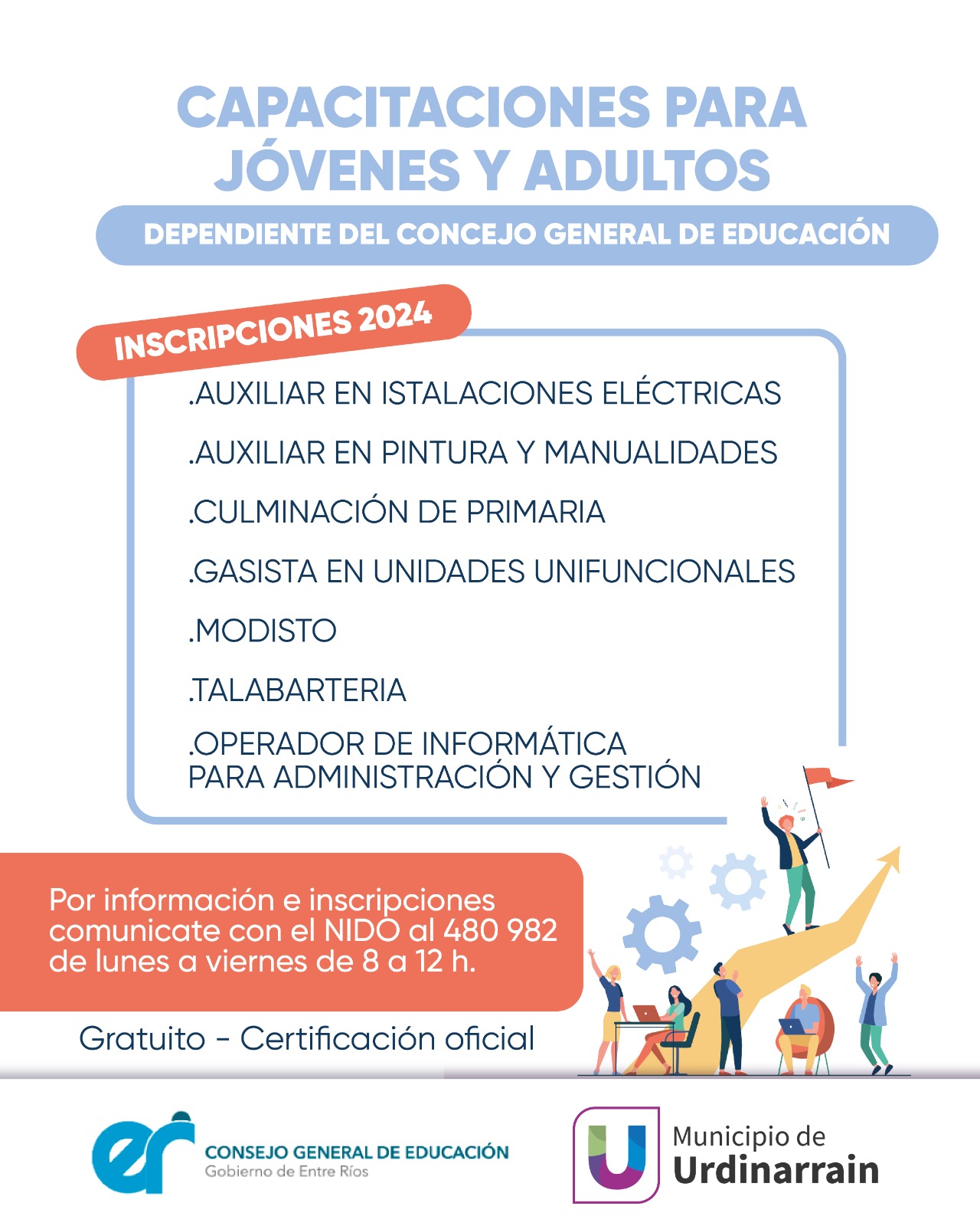 Dependiente de la dirección de Educación de Jóvenes y Adultos del Consejo General de Educación, las capacitaciones comienzan en abril y se dictan en algunos barrios de la ciudad de Urdinarrain.
