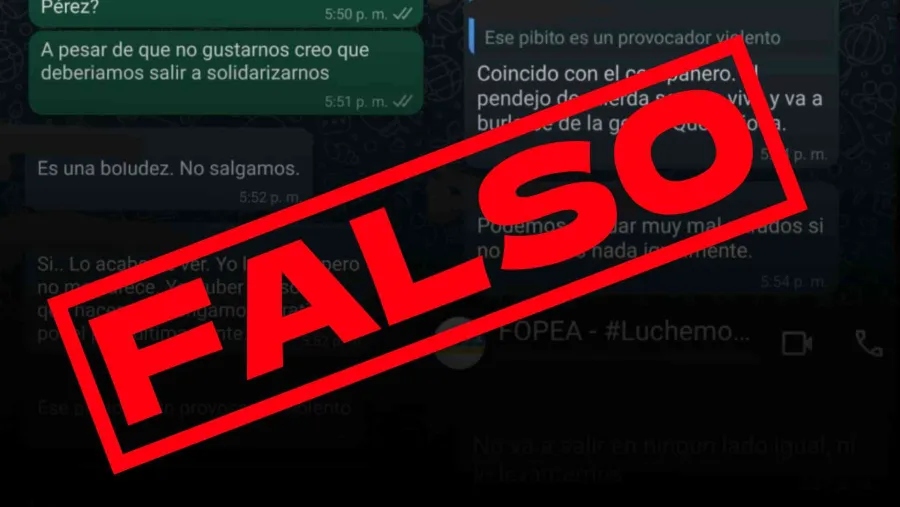 A través de un comunicado, dejó en claro: “Ese diálogo es FALSO. Jamás existió esa conversación. Por tanto, su difusión, atribuyéndole responsabilidad a FOPEA, tiene la clara intención de desprestigiar a esta organización”.