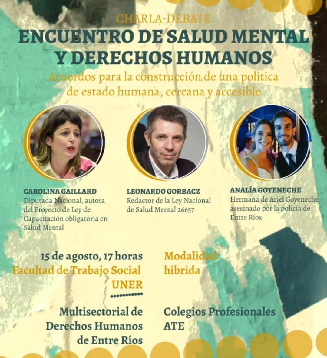 Junto a la diputada Carolina Gaillard y al ex diputado Leonardo Gorbacz, ambos del PJ, la hermana de Ariel Goyeneche será parte de un panel sobre salud mental y derechos humanos que se llevará a cabo este jueves 15 de agosto.
