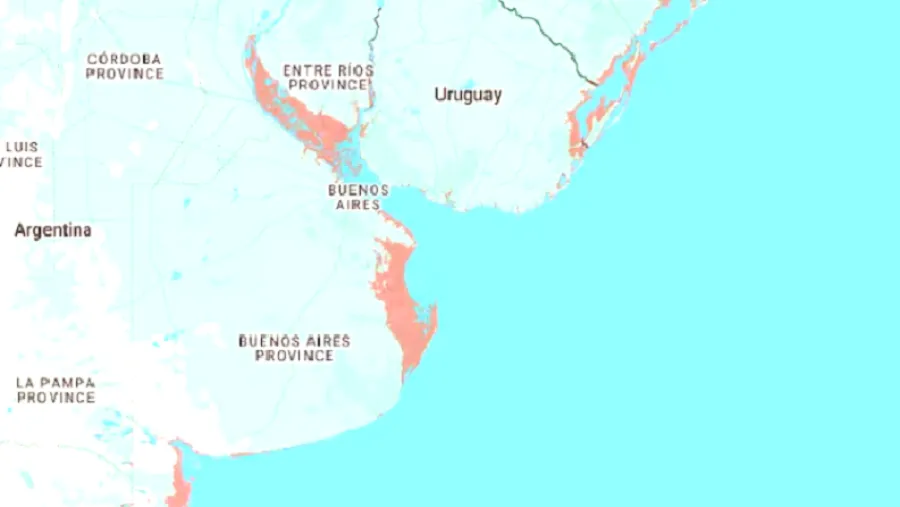En la Argentina, las zonas más afectadas serían parte de las provincias de Buenos Aires y de Entre Ríos, como se dijo, que podrían quedar bajo el nivel del mar en un escenario de suba global de la temperatura de 3 o 4 grados por encima de los valores preindustriales. En los mapas de esa publicación, la zona del delta del Paraná y la costa del Río de la Plata y la Bahía de Samborombón aparecen identificadas como sensibles. “Se destaca el delta del Paraná y gran parte del este de la provincia de Buenos Aires”, detalló la especialista del SMN.