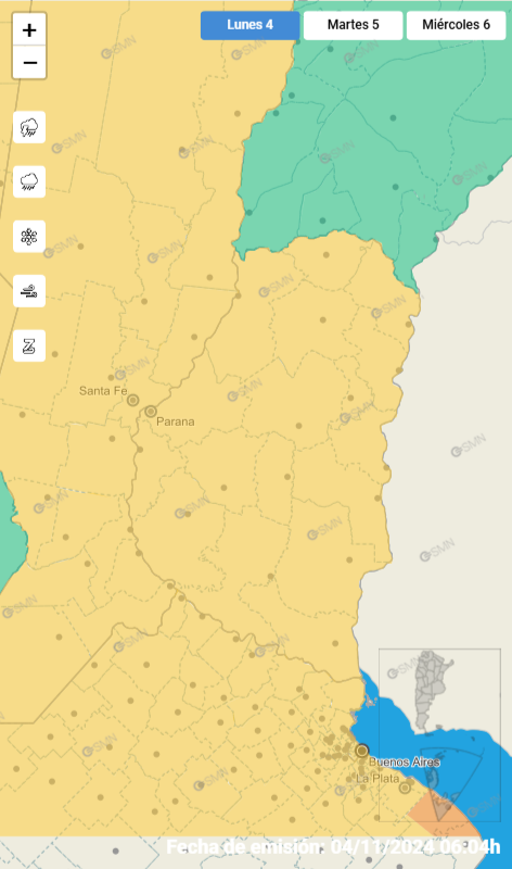 Toda la provincia se encuentra bajo alerta amarillo por tormentas para este lunes 4 de noviembre en horas de la tarde, según informó el Servicio Meteorológico Nacional (SMN).