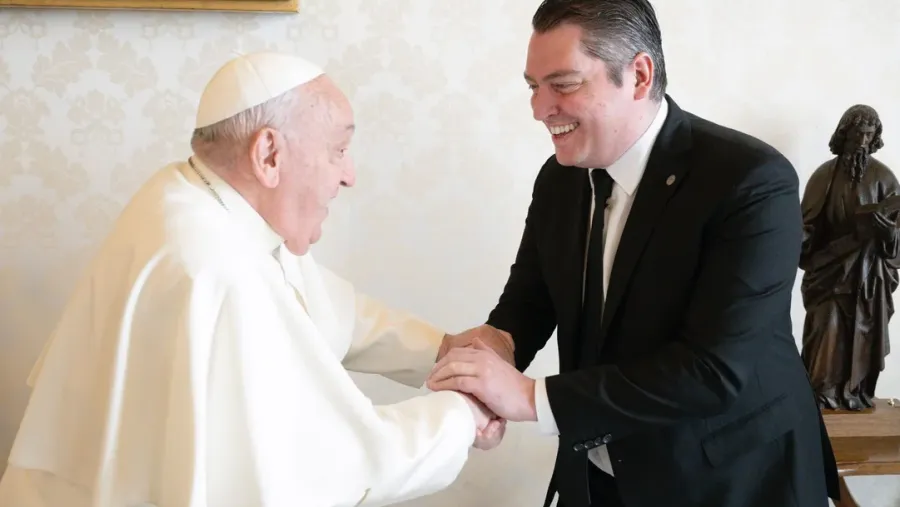 El encuentro entre el sumo pontífice y el intendente fueguino se llevó a cabo en la Biblioteca Privada del Palacio Apostólico del Vaticano.