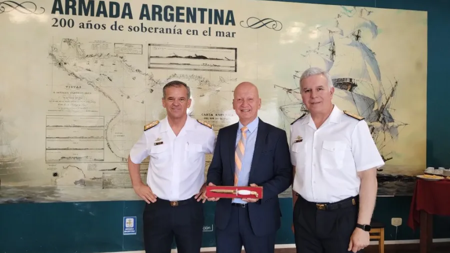 Estuvo acompañado por el presidente de la Delegación Argentina de la Comisión Administradora del Río Uruguay (CARU), embajador Roberto Alejandro Salafia; el delegado de CARU, Nicolás Domingo; el director del Servicio de Hidrografía Naval (SIHN), contraalmirante Hernán Jorge Montero; y el comandante del Área Naval Fluvial y jefe de la Base Naval Zárate, contraalmirante Daniel Francisco Finardi.