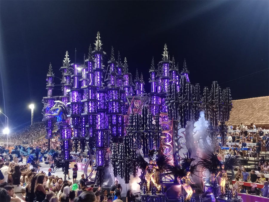 A las 21:55, Silvio Solari –la voz del Corsódromo- anunció que se venía la fiesta que todos estaban esperado. Y las cuatro comparsas transformaron la pasarela de 500 metros de largo en un escenario vibrante, entrelazando tradición e innovación en propuestas artísticas que cautivaron tanto por su espectacularidad visual como por la profundidad de sus historias. Cada detalle fue un recordatorio de que el Carnaval del País es más que un espectáculo: es una manifestación viva de cultura, pasión y comunidad.