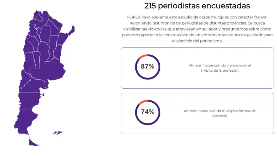 El dato se desprende de la investigación “Periodistas Amenazadas: investigar para protegerlas”, que fue realizada por el Foro de Periodismo Argentino (Fopea) con el apoyo de UNESCO. Tiene como objetivo analizar en profundidad la situación de las mujeres periodistas en nuestro país y dar a conocer un Modelo de Protocolo para Abordar las Violencias de Género en los Medios de Comunicación.