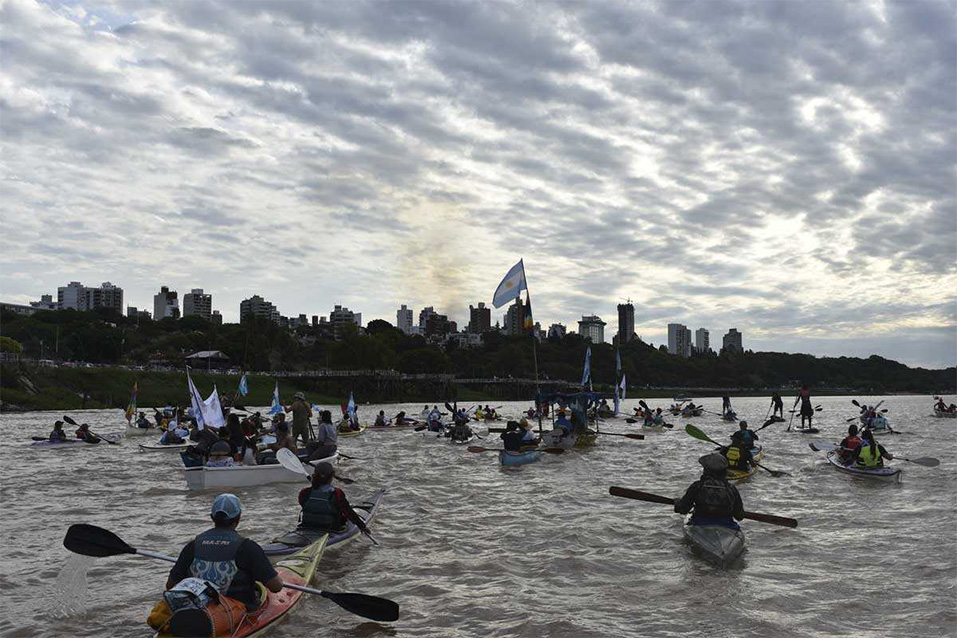 La “Remada Contracorriente por el Agua y la Vida” unió a 180 organizaciones costeras, se organizó para frenar el nuevo llamado a licitación de la “Hidrovía Paraná-Paraguay” y su dragado a 44 pies de profundidad. El viaje culminará este sábado 22 en Rosario, en el Día Mundial del Agua.