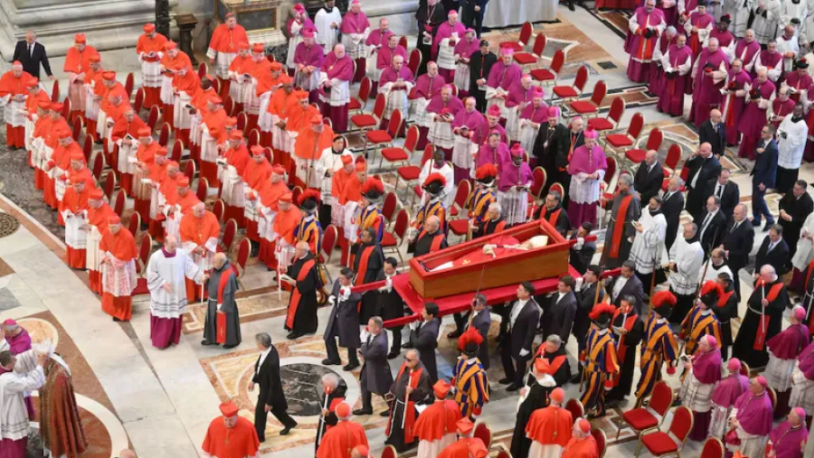 Con esa escenografía, teatralidad y solemnidad que sólo tiene una institución milenaria como la Iglesia católica, mientras las campanas de la Basílica de San Pedro tañían en señal de luto y después de un momento de oración en latín presidido por el cardenal camarlengo, el estadounidense Kevin Farrell, entre coros de la Capilla Sixtina, fue trasladado este miércoles por la mañana el féretro del papa Francisco desde su hogar de Santa Marta, hasta la Basílica de San Pedro.