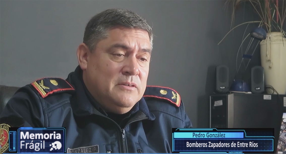 “Tengo un recuerdo muy importante, no solamente yo, sino mucha gente que trabajó en la División Bomberos Zapadores de la Policía de Entre Ríos, que en definitiva no están hoy, que están tan retirados. El 7 de agosto del 2006, entre las 6 y media y las 7 de la mañana, los teléfonos -me acuerdo que estaba saliendo de guardia yo- … y los teléfonos empezaron a sonar. Y el Comando Radioeléctrico, en ese momento estaba el Comando, empezó a llamar que se estaba quemando Cartocor; la empresa Cartocor. Así que no nos dudamos y salimos 2 dotaciones. Fui el primero en que a concurrir al lugar y atrás venía otra dotación de mayor porte. Y cuando íbamos por Almafuerte, doblando por (Antonio) Salellas, la verdad que ahí nos dimos cuenta de que las lenguas de fuego de la empresa ya estaban saliendo por el techo. O sea, que ya estábamos en un incendio generalizado, en la etapa de libre combustión. Hay 3 etapas de incendio que es la incipiente, libre combustión y latente, se estaba desarrollando a pleno. Bueno, no dudé de pedir apoyo al Comando de Cuarteles de Bomberos de la zona, con el transcurrir de los minutos nomás, llegó Paraná, los Bomberos Voluntarios Paraná, llegaron de Crespo, llegó de Ramírez, llegaron de Santa Fe, pedía apoyo… porque la verdad que estábamos frente a un incendio importante, un incendio de magnitud. Porque sabíamos que dentro de la empresa teníamos una manufactura de lo que era el cartón corrugado, que era aireado, seco, y bueno, sabíamos que nos enfrentábamos a algo grande. Así que cuando ingresé a la fábrica, los empleados me fueron conduciendo y me fui a un lugar donde es de tránsito, donde el material que está acopiado, listo para ser transportado a ciertos lugares donde se quería, digamos, lo que necesitaban las empresas, las de las cajas… estaban… había muchas pilas de cartón corrugado, era un montón, tenían casi 3 metros de alto, ahí es donde se estaba desarrollando el incendio. Y era tan rápido la velocidad de combustión que generaba el cartón, que era muy difícil pararlo con la autobomba que yo estaba, con el caudal de agua. Era muy difícil. Aparte, me acuerdo que había ido con el Suboficial Ramos, que ya está retirado, y nos metimos y tuvimos que sacar la autobomba porque el incendio iba hacia nosotros. Así que, este, bueno, al rato, a la media hora-40 minutos, la otra dotación que estaba por la parte de atrás me dice: mirá, me dice, no solamente se está quemando eso, sino que se están quemando las bobinas de papel. Y las bobinas de papel eran tanta cantidad que era por una pared, se accedía a una puerta, y del otro lado había, no sé… 30-40 bobinas de papel, así que estábamos muy complicados. Bueno, empezaron a caer los Cuarteles de Bomberos, vino camiones cisterna del Municipio, ambulancias, y la verdad que el personal de Cartocor en ese momento, durante todo el día del trabajo, nos atendió de primera en todo, nos asistió en barbijo, guante, máscaras, porque era un incendio grande. Este, así que, bueno, se empezó a trabajar, y más o menos aproximadamente… bueno… el personal se subió parte de arriba del techo, porque parte del techo se cayó, pero se tenía que subir para trabajarlo de arriba. Por eso, es importante que el día de mañana se pueda llegar a comprar un hidro elevador, porque los incendios de fábricas se necesitan un hidro elevador, para trabajar en altura, máxime cuando los techos se caen. Entonces, es muy importante el equipamiento. Bueno, empezamos a formar ese pequeño sistema de comando de incidente ahí en el lugar, y en el transcurso de las horas que corrió, viene gente de la empresa y estaba el jefe de bomberos en ese momento de Zapadores, y me dice: mirá, del otro lado está el corazón de la empresa. Y era la máquina madre, que era una máquina que estaba valuada en muchos millones de dólares, pero era la que realmente generaba el producto que eran solicitado a la empresa. Bueno, entonces, como la pared que dividía de lo que era el incendio que se desarrollaba con magnitud, era importante, lo que se tenía que evitar era que pasara (le incendio) a las maquinarias. Así que se trabajó en la pared para enfriarla, evitar que se propagara, y bueno, el incendio fue dominado 4-5 de la tarde. Pero, igualmente, las hogueras de lo que eran los rollos de papel, las bobinas de papel, que se quemaban por fuera, que era muy difícil apagarla porque estaban juntas, pero estaba circunscrito”.