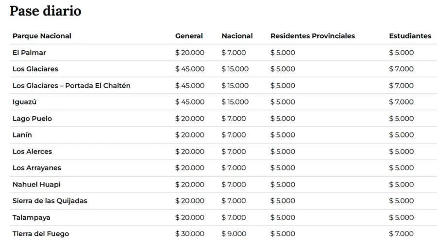 Además, la APN resaltó que mantener estables los precios permite fortalecer el desarrollo local de las comunidades cercanas a las áreas protegidas, donde el turismo representa una actividad central para la economía regional.