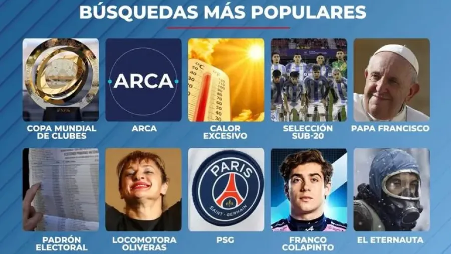 En paralelo, la dinámica política volvió a impactar en los algoritmos, con referencias al padrón electoral y debates institucionales que impulsaron el interés. También se sumaron búsquedas vinculadas al Papa Francisco y al rol del territorio nacional dentro de los grandes acontecimientos globales.