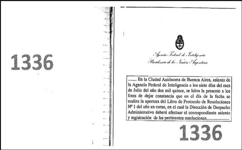 Incardona –que investiga el caso junto al fiscal Santiago Eyherabide- señaló, luego de que algunos medios difundieran ciertos nombres que aparecen en el libro de resoluciones, que “la filtración y divulgación de esa clase de documentos por fuera de la causa, tratándose de información confidencial y más allá de su desclasificación a los efectos de servir de prueba en relación con el objeto de estas actuaciones, podría afectar intereses de la Nación (art. 16 bis inciso a ley 25.520)". "También podría constituir un obstáculo a la presente investigación y una vulneración al derecho de defensa, en tanto, material probatorio de ese tenor ha llegado a manos ajenas a las partes”, agregó.