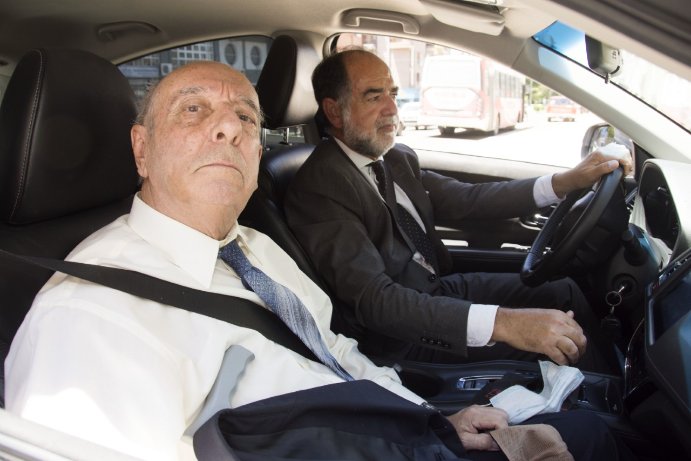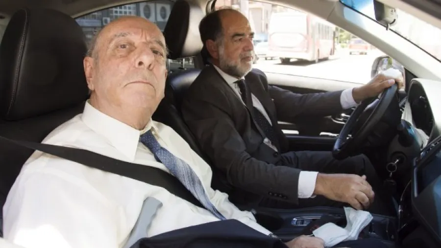 Joe Erbetta, acompañado de su exabogado Marcelo Baridón, al llegar al Juzgado Federal de Paraná.