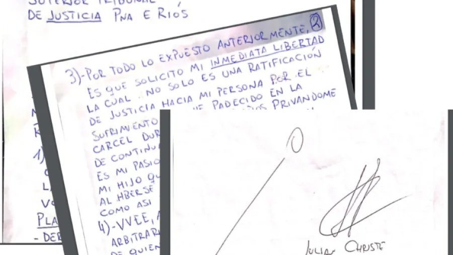 Tras esa presentación, el propio Christe redactó una carta, de puño y letra, desde su encierro en la penitenciaría paranaense dirigida a los vocales de la Sala Penal del STJ -Claudia Mizawak y Daniel Carubia votaron a favor del recurso extraordinario presentado por la defensa de Christe, en tanto que Miguel Giorgio lo hizo en disidencia.