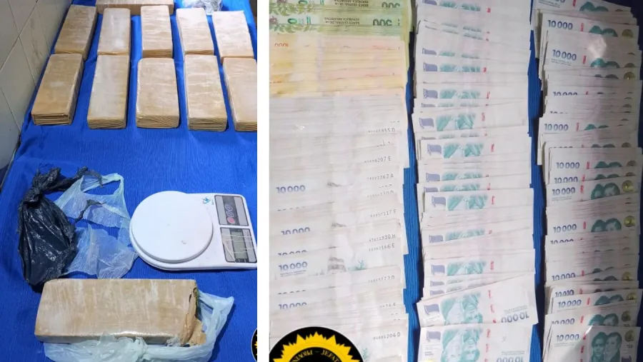 En las viviendas se hallaron elementos que vinculan a los acusados con el narcotráfico: 16 ladrillos de marihuana que pesaron en total 12,7 kilos, gran cantidad de plantas y hojas de cannabis (casi 2 kilos), 2 kilos de cocaína, más de 10 millones de pesos, un arma de fuego de fabricación casera, dos autos y una moto, entre otras evidencias.