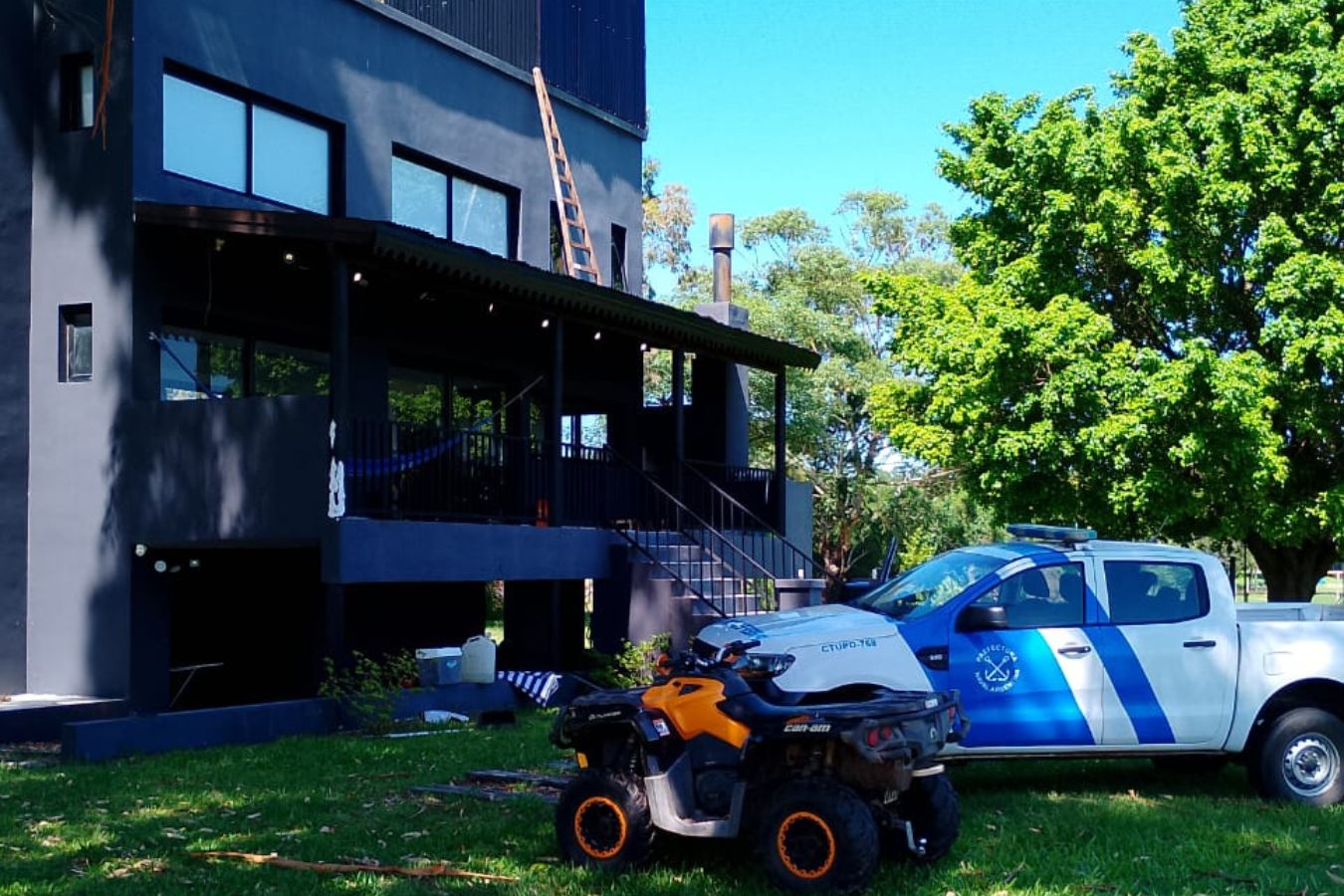 La otra propiedad de Carniel se encuentra en Ramírez y Alvear, en el centro de Concordia, donde construyó un complejo de departamentos. Acá se encontraba el sospechoso, con la sorpresa de que en el fondo los policías hallaron pruebas que confirman la hipótesis de la investigación: dos camionetas Toyota Hilux con pedidos de secuestro por robos, una del 16 de julio de 2025 y otra más reciente, del 3 de noviembre, y ambas con chapas patente a nombre del acusado. Además, tenía otro vehículo de igual marca con patente duplicada. También se secuestraron las cámaras con DVR de almacenamiento, celulares y notebooks, así como 1.820 dólares, 12.990 pesos uruguayos y 50 euros.