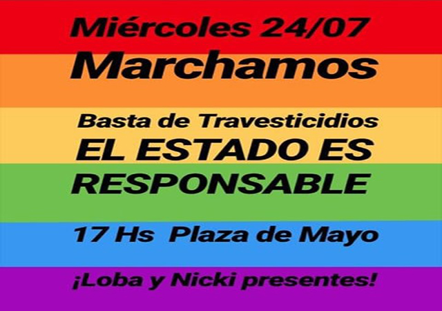 El documento al que accedió ANALISIS y en el que se adhiere a la movilización que se realizará este miércoles, advierten que “los travesticidios de La Loba y de Nicki exponen claramente la responsabilidad política de quienes deberían garantizar derechos y no lo hacen. Debemos decir las cosas por su nombre. Cuando salimos a la calle y reclamamos, le reclamamos a un Estado que sistemáticamente violenta a las identidades travestis y trans”.