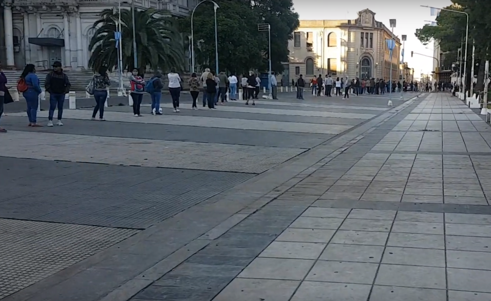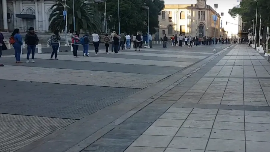 Además, en el video se puede observar la fila que había en la sede del Correo Argentino sobre 25 de Mayo.