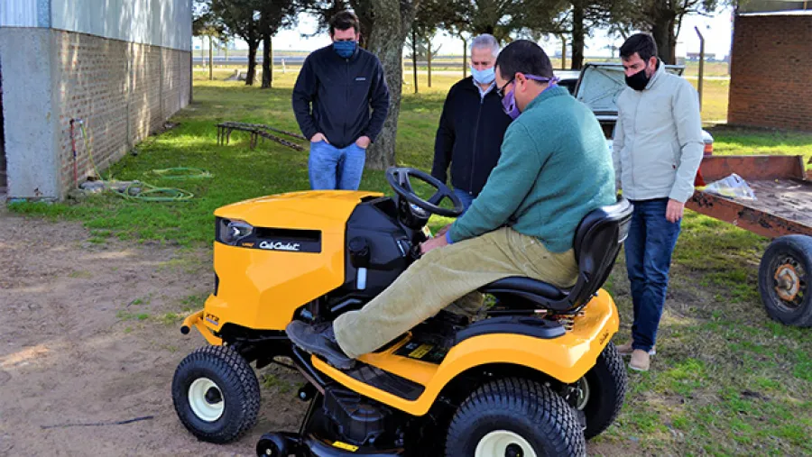 Este mini tractor cortacésped, marca CUB CADET, con 23hp de potencia, transmisión hidrostática, de 3 cuchillas con un ancho de corte de 1,27 mts., fue recibido esta mañana por el Secretario de Gobierno y miembro del directorio del EPPE Carlos Möhlinger, junto con sus pares del directorio Juan Villaverde y Federico Barrandeguy.