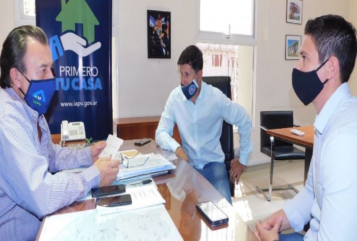 El avance en las gestiones para la construcción de nuevas viviendas para Pronunciamiento fue el tema desarrollado durante una reunión de trabajo que mantuvo el titular del Instituto Autárquico de Planeamiento y Vivienda (IAPV), Marcelo Bisogni con el intendente, Ricardo Sandoval.