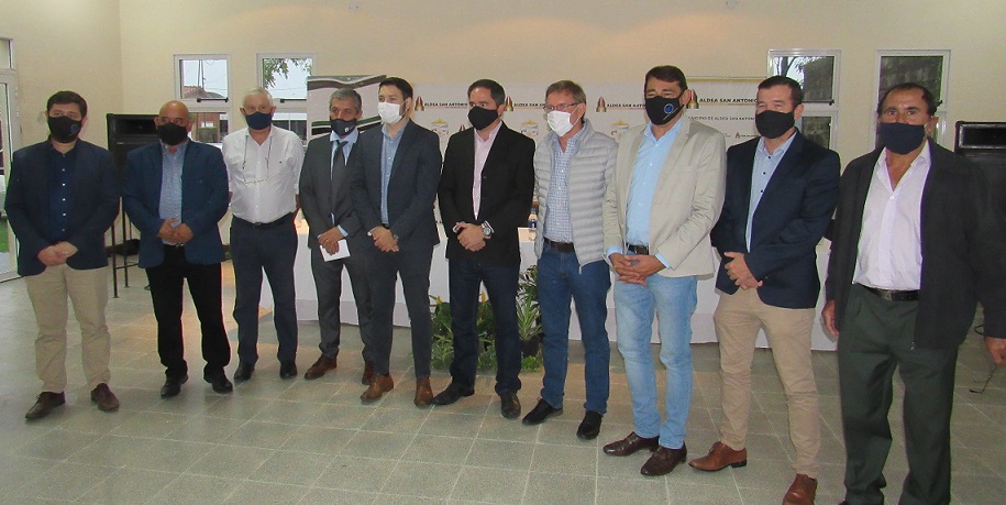 Estaban presentes, el ministro de Producción, Turismo y Desarrollo Económico, Juan José Bahillo; el intendente anfitrión, Mauro Díaz Chaves, sus colegas de Gilbert, Fabián Constantino; de Urdinarrain, Sergio Martínez, el senador provincial Jorge Maradey, el secretario de Transporte, Néstor Landra y los representantes de las empresas de transporte Jovi Bus, José Vitasse y San José, quienes firmaron el convenio para la implementación, desde el lunes 12 de abril del corriente año, del transporte interurbano de pasajeros entre las localidades de Aldea San Antonio, Gilbert y Urdinarrain.