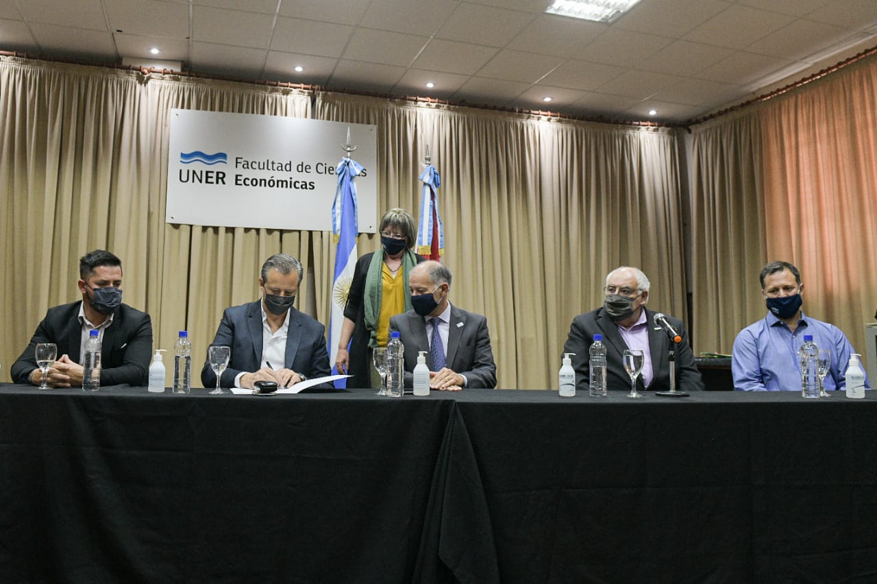 Estuvieron presentes los decanos Eduardo Muani, de la Facultad de Ciencias Económicas, y Pedro Barbagelata, de la Facultad de Ciencias Agropecuarias; el vicedecano de Cs. Económicas, Sebastián Pérez; la vicerectora de la UNER, Gabriela Andretich; el secretario Económico y Financiero de la UNER, Juan Manuel Arbelo; y el Director de Casa Uner, Pablo Mitre.