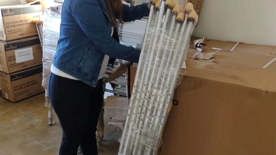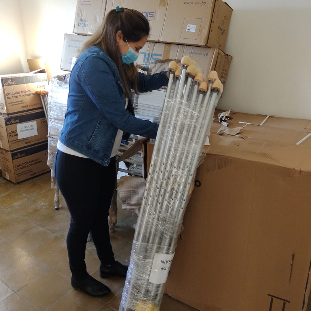 Entre los elementos recibidos días pasados hay: sillas de ruedas para adultos, bastones, muletas, andadores, baños portátiles, cabestrillos, colchones y almohadones antiescaras.