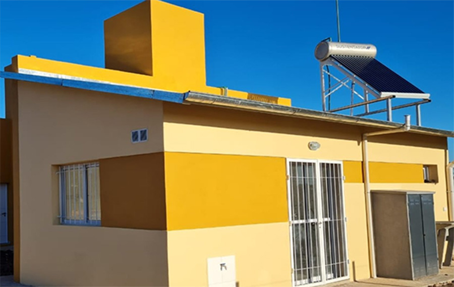 Cada vivienda tiene una superficie de 63 m2, estará compuesta de dos dormitorios, permitiendo la ampliación de otra habitación, comedor- cocina, y baño. Además, tendrá un espacio para cochera y huerta, y contará con un termotanque solar de 180 litros con resistencia eléctrica.