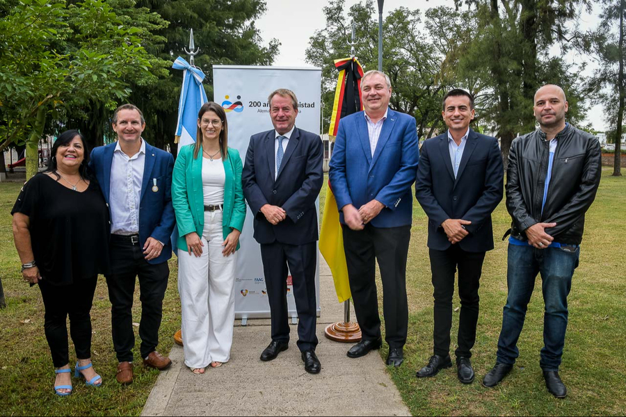 La actividad conmemorativa por los 200 años de la inmigración alemana en Argentina fue este jueves en Plaza Alemania de Paraná. El viceintendente David Cáceres participó de un acto, junto al embajador de Alemania, Dieter Lamlé.