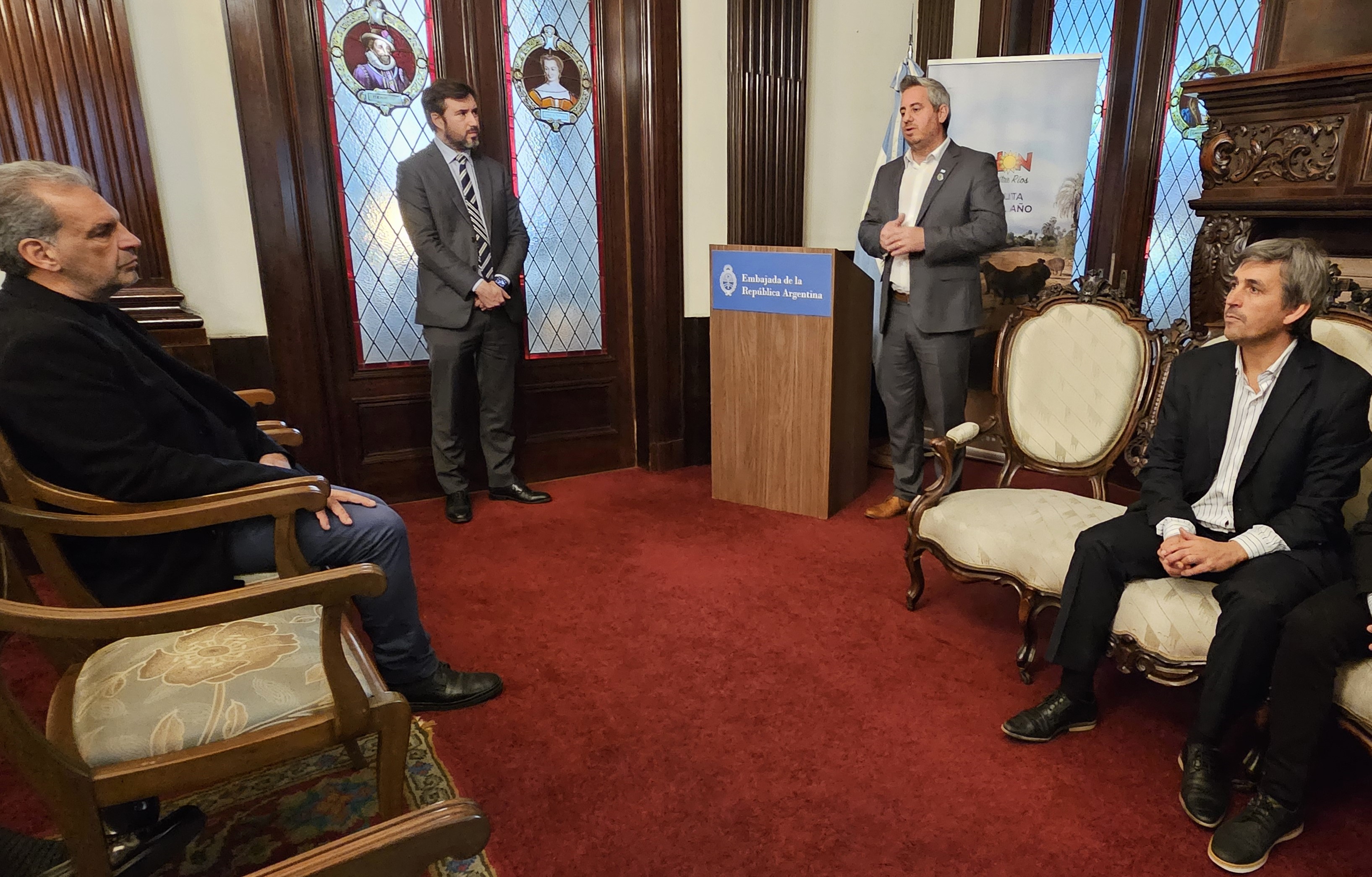 Del encuentro en la Embajada de Argentina en Uruguay, participaron el intendente Walser, el secretario de Turismo y Cultura, Federico Escher, el secretario de Gobierno, Mariano Bravo, y personal técnico del área de Turismo.