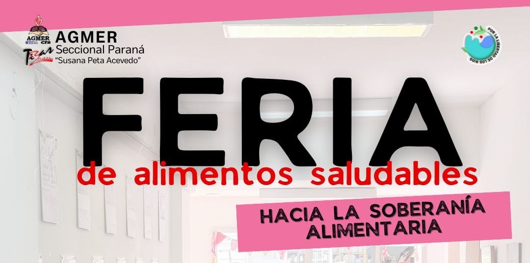 Se realizará la Feria de Alimentos Saludables “Hacia la Soberanía Alimentaria”. Será este sábado 13 de septiembre, de 9 a 14, en la Seccional Paraná de la Asociación Gremial del Magisterio de Entre Ríos (Agmer), Laprida 136.