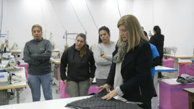 El intendente de Colón, José Luis Walser, acompañado por el secretario de Desarrollo Humano de la Municipalidad, Juan Pablo Villalba, y la directora de Industria, Producción y Empleo Carolina Bombig, visitó a la joven emprendedora Serena Paccio en su taller "Dolce Marga", ubicado en calle Tucumán 529.