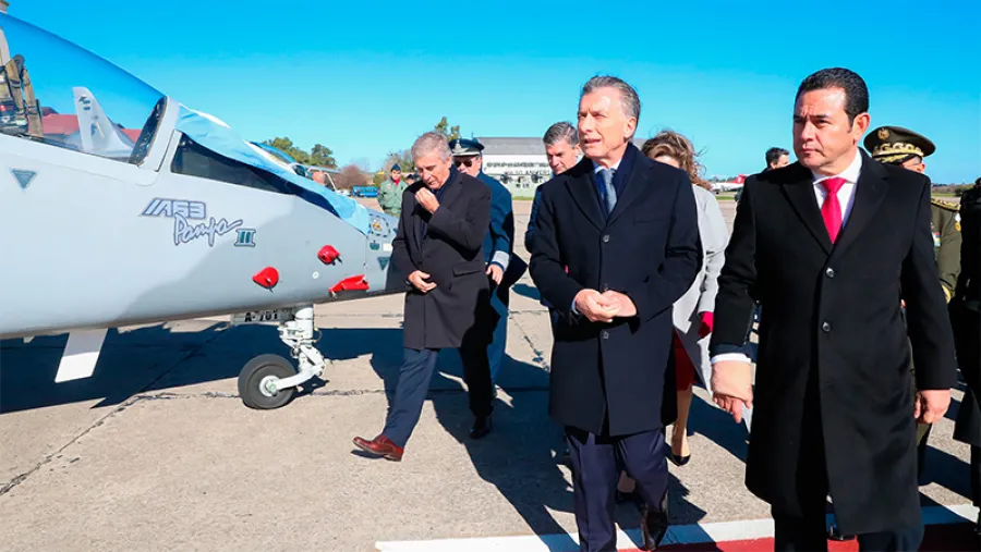Los presidentes de Argentina, Mauricio Macri, y de Guatemala, Jimmy Morales, encabezaron este miércoles, en el Aeropuerto de El Palomar, el acto formal de venta de dos aviones Pampa III, fabricados por la empresa FAdeA, lo cual representa la primera exportación de ese tipo de aeronaves de reconocimiento que concreta la Argentina.