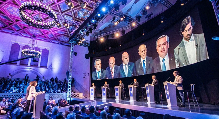 En el Paraninfo de la Universidad Nacional del Litoral de la ciudad de Santa Fe, se realizó el primer debate presidencial de cara al 27 de octubre. La próxima cita será el domingo 20 a las 21 en la Facultad de Derecho de la UBA.