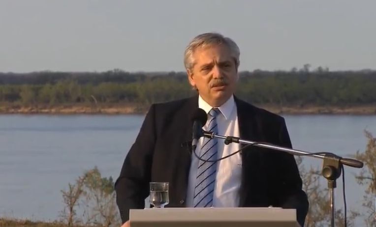 “Y quién puede vivir en paz sabiendo que hay un país central y periféricos. Nadie. Por eso, eso que vemos aquí es un canal de progreso, para Formosa, para Chaco, Misiones, Corrientes, Entre Ríos, Santa Fe, Buenos Aires, provincias a cuyo litoral nacen puertos que permiten sacar producción de las provincias del norte y también del centro del país”, sostuvo, y comprometió al ministro de Transporte, Mario Meoni, a que “el tren llegue a cada puerto de las laderas de este río, para favorecer el traslado de la producción y que ya no lleguen solo un millón de camiones, que lleguen camiones y trenes cargados de producción, que por este río remonten y salgan al Atlántico y vayan al mundo a llenar de producción argentina”.