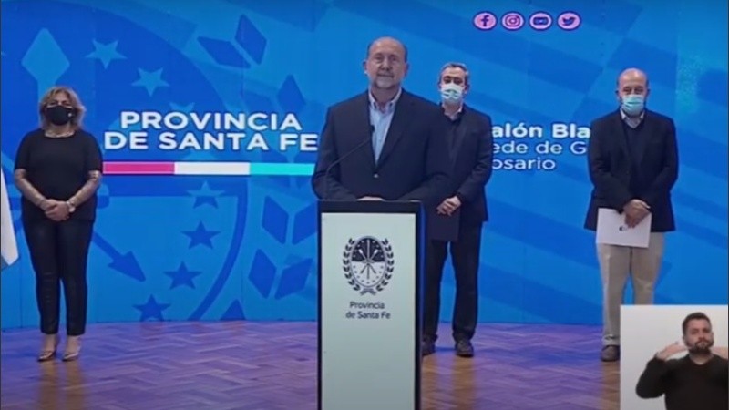 “Vamos volver a actividades esenciales por 14 días", anunció el gobernador Omar Perotti este viernes desde Rosario, al comunicar las nuevas restricciones de circulación en medio de los casos crecientes de Covid-19. “Tenemos que volver a controlar los contagios. Sé que es difícil", agregó el mandatario junto al intendente rosarino, Pablo Javkin.