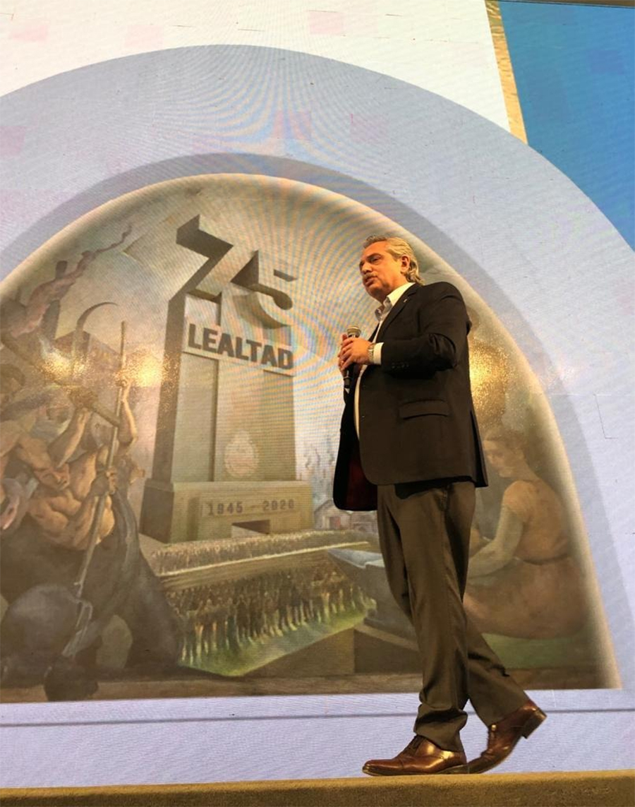 El Presidente Alberto Fernández encabezó el acto por el Día de la Lealtad en la sede de la CGT. Fue el único orador y destacó que “el peronismo siempre mantuvo la regla de ser leal a su pueblo”, como así también que la movilización del pueblo el 17 de octubre de 1945 cambió la historia “para siempre”. “Acá no hay odios ni rencores, acá hay ganas de poner de pie a la Argentina de una vez y para siempre”, afirmó también y llamó a dejar de lado los rencores.