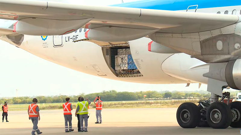 El octavo vuelo de Aerolíneas Argentinas proveniente de Rusia trajo al país un cargamento de 500 mil dosis.