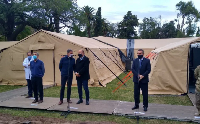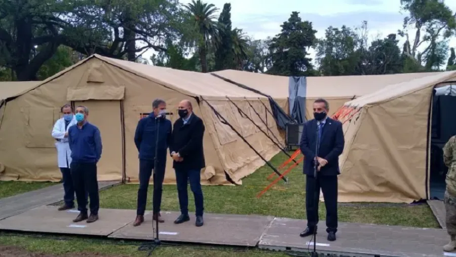 El despliegue del Hospital Militar Reubicable permite sumar 30 camas para pacientes leves No Covid y, en consecuencia, aumentar las capacidades sanitarias del Hospital Cullen frente a la segunda ola de la pandemia por el Covid-19.