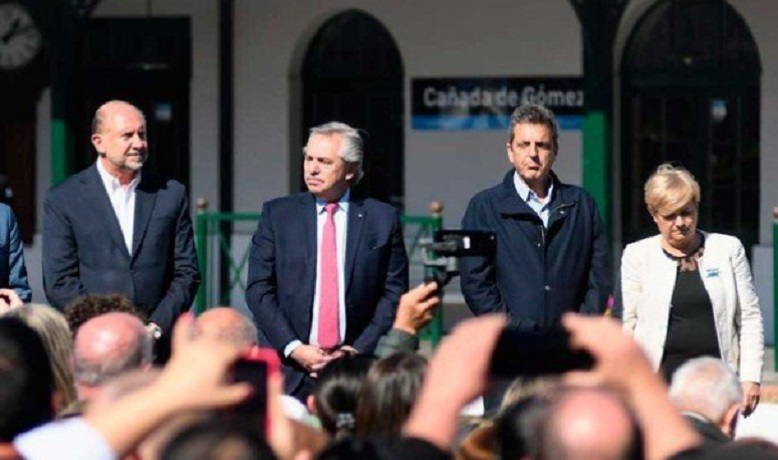 Acompañado por los ministros de Economía, Sergio Massa, y de Transporte; Alexis Guerrera, y junto al gobernador santafesino Omar Perotti, el Jefe de Estado encabezó el acto de puesta en marcha del servicio ferroviario que conecta Cañada de Gómez con Rosario después de 45 años de inactividad.