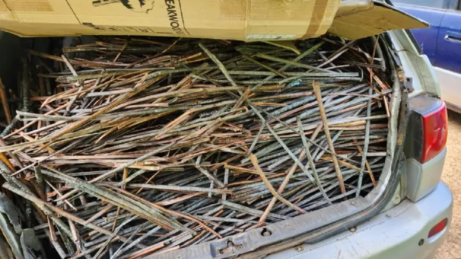 El personal aduanero inspeccionó el baúl y constató que lo que el conductor llamaba basura era en realidad una importante cantidad de metal pesado.
