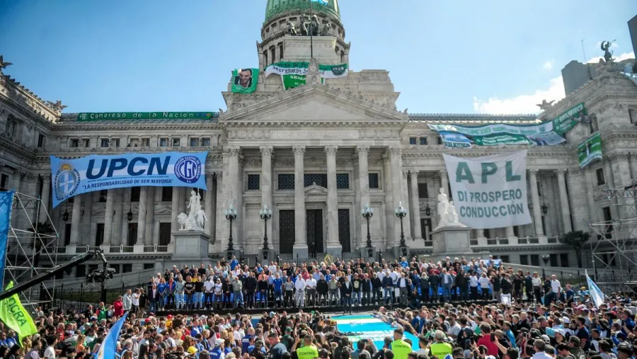 "En tres semanas se define el futuro de la Argentina, si somos un país con derechos laborales, con vacaciones pagas, con derecho a la indemnización, si somos un país que pelea por mejorar el ingreso de los trabajadores, o si volvemos al pasado", expresó Massa durante un acto frente al Congreso de la Nación organizado por las centrales obreras.