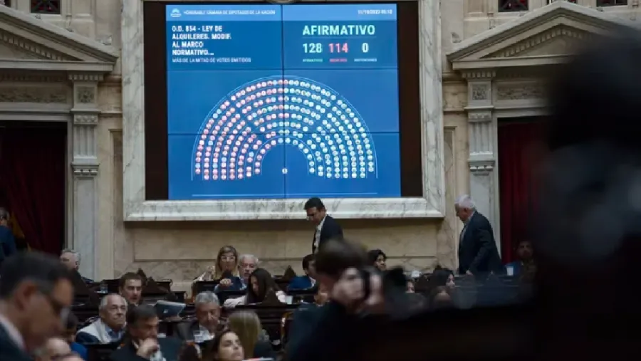 Poco antes, con 128 votos contra 114, Diputados convirtió en ley el proyecto de reforma de alquileres con los cambios incluidos por el Senado impulsados por el Frente de Todos, con lo cual los contratos entre propietarios e inquilinos se mantendrán por tres años y tendrán una actualización semestral, en lugar de anual como establecía la actual norma.