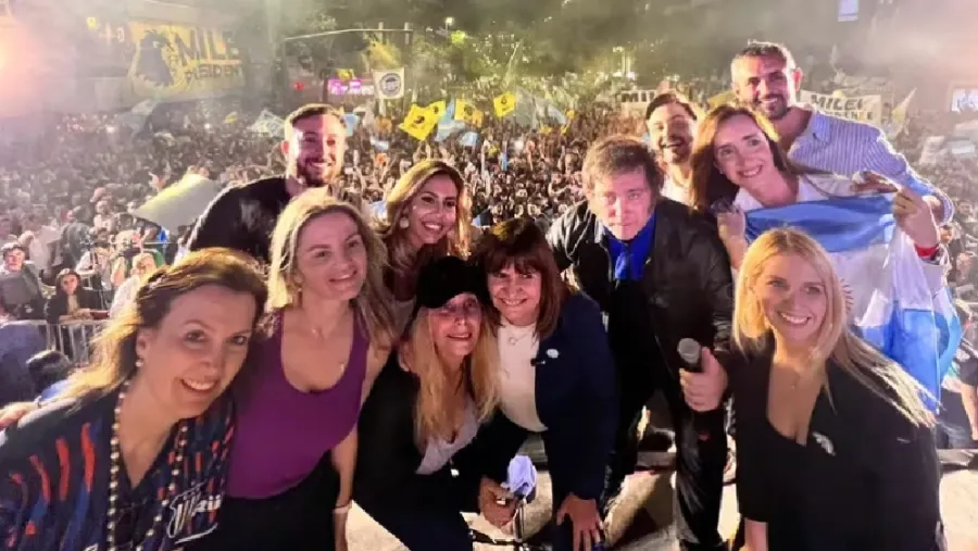 En el escenario, además de Bullrich, estuvieron junto a Milei su hermana, Karina; su compañera de fórmula presidencial, Victoria Villarruel; los ex candidatos a jefe de gobierno porteño y gobernadora bonaerense, Carolina Píparo y Ramiro Marra, respectivamente; los diputados electos Martín Menem, María Celeste Ponce, Romina Diez y Diana Mondino, y el intelectual de derecha Agustín Laje.