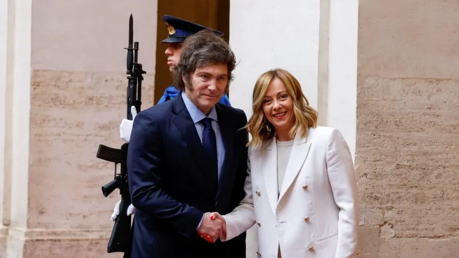 Al frente de una coalición de derecha desde hace más de un año, Meloni, de 47 años, el 23 de enero pasado tuvo palabras llenas de elogio hacía Milei.